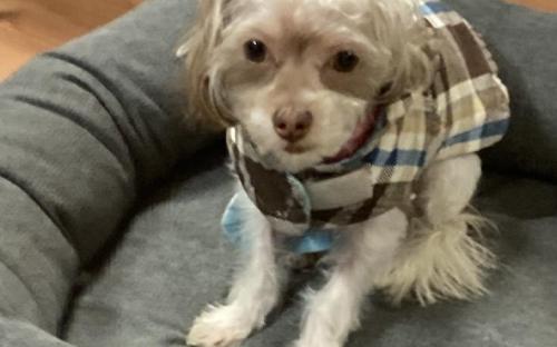 GIZMO is understandably overwhelmed by people. He is terrified of being picked up; his little legs flail and he sometimes poops out of fear. But despite everything he has endured, he has never once growled, snapped, or shown aggression. He is a gentle, fragile-hearted boy who simply doesn’t know yet that humans can be safe. Once he is in your arms, he relaxes and will even settle into your lap — a small but powerful sign that he wants to trust.