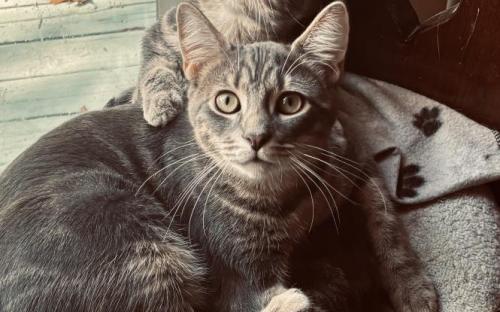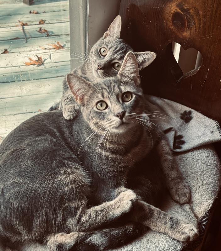 JASPER & ABIGAIL, two of MELINDA's kittens, are a super sweet, affectionate, and playful bonded pair.