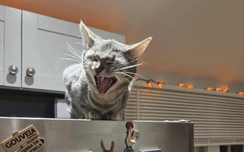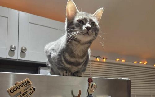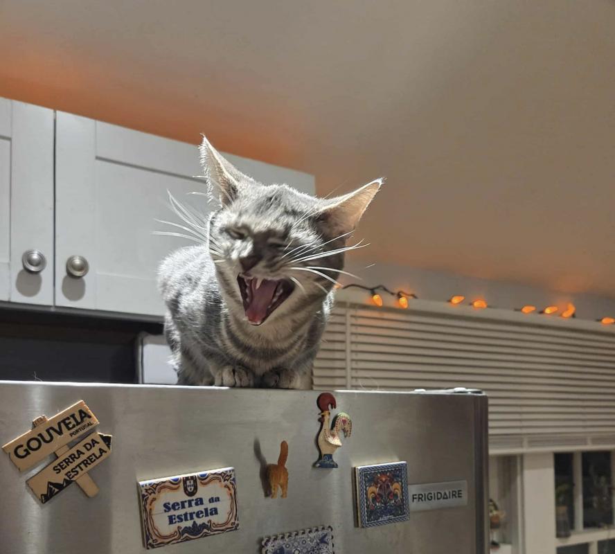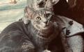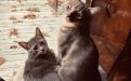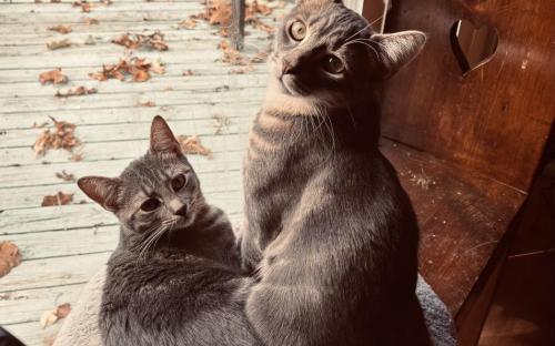 JASPER, the malle, is larger and the lighter grey and ABIGAIL is the female, and she is darker grey.
