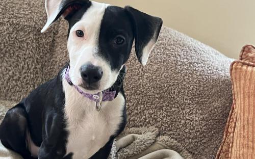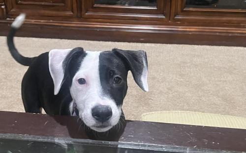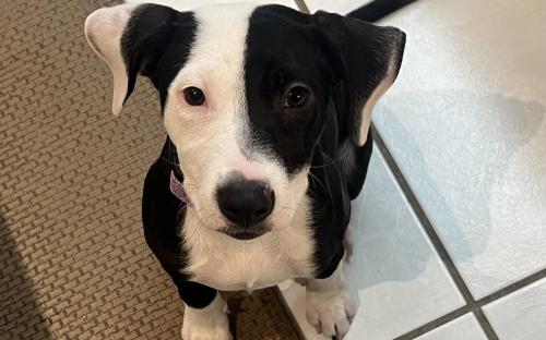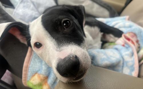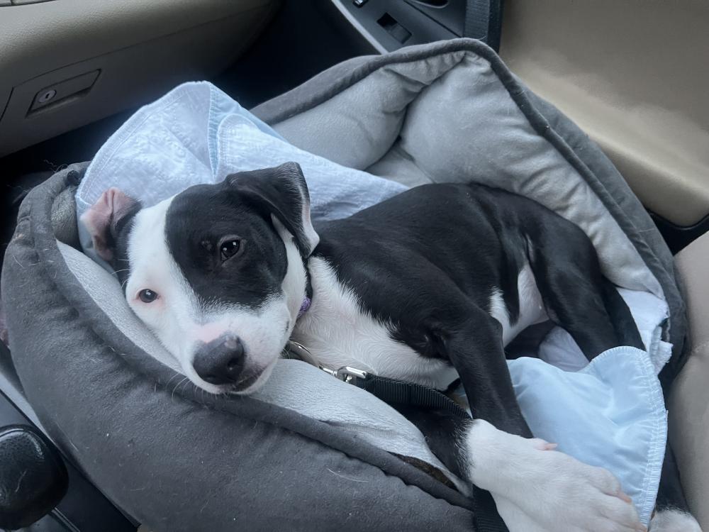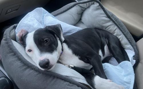 MOCHI loves to play and go for car rides. She sleeps through the night in a crate, but doesn't want to spend her days in one too. She's learning to walk on a leash and is working hard on her housebreaking. She would do best in a home where someone is patient and around a lot to take her outside on a schedule.