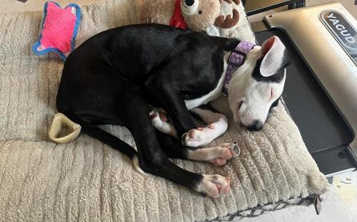 As of 10.18.2025 MOCHI weighs 18.2 lbs. She is apayed, vaccinated for rabies and distemper, dewormed, and microchipped. We don't know her breed, maybe a llittle terrier, perhaps some greyhoud or whippet, who knows? Only a DNA test willl tell for sure. We expect her to be a pretty tall dog though.