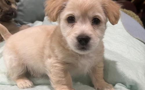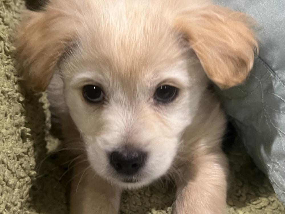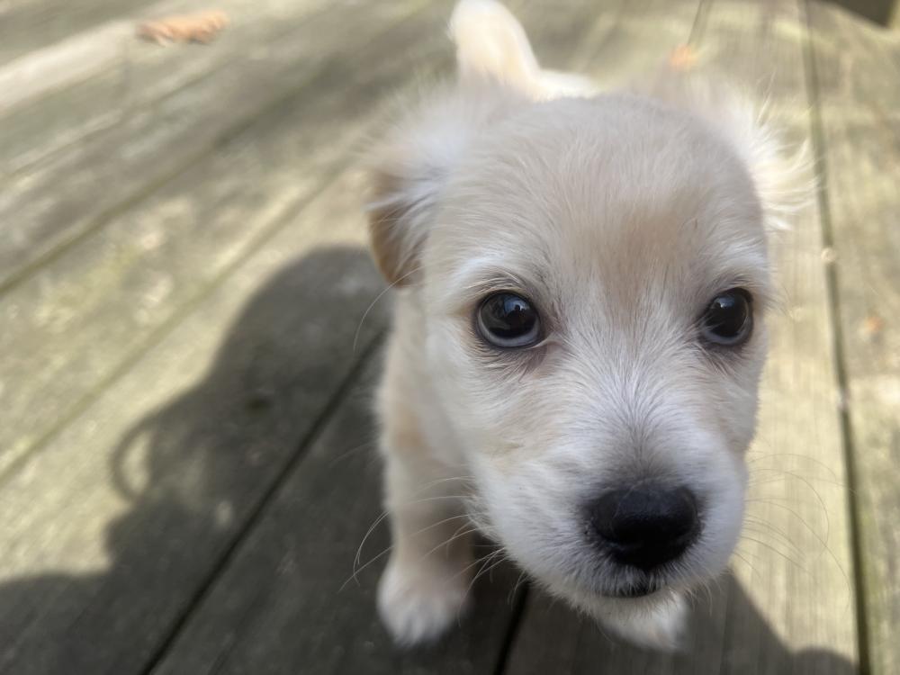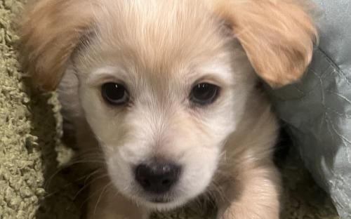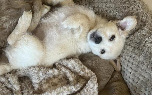 RADISH was born on January 13, 2026. He is a mix of chihuahua, maltese, golden retriever, and who knows what else. He's a small dog and will probably grow to be 15 lbs.