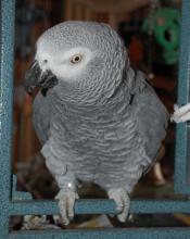 Nick may not have paws, but we were still commited to helping this African Grey find his forever home. Nick's new mom Kristina writes, "Nick has us all wrapped very tightly around his tiny toes!!!! My other little parrot, Kenny has really adjusted well to Nick, and even calls 'Nick!' At 5:30 every morning Nick shares a banana with my husband. At 7:00 sharp he yells 'OUT'!! He enjoys playing chase the ball, and tug a war with my sons and a paper towel roll!" Well Nick. It certainly so