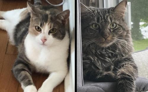 DELANEY is the calico. HERMIONE is the DLH tabby. They are both spayed, vaccinated for rabies and distemper, and negative for feline aids (FIV) and leukemia (FeLV). They are being fostered in Brookfield, CT.