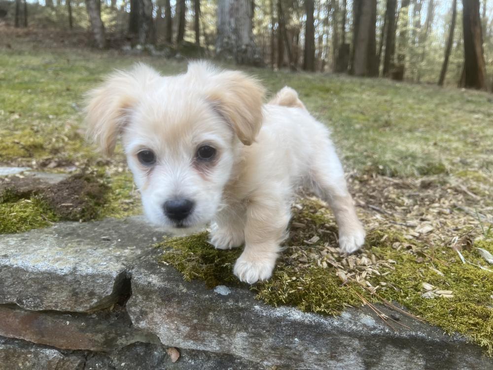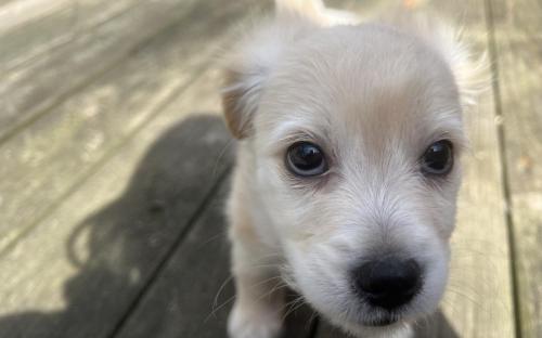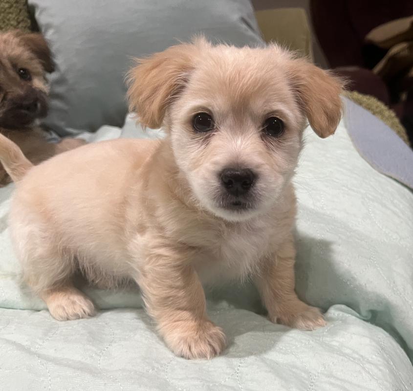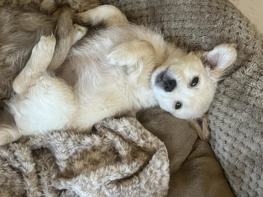 RADISH was born on January 13, 2026. He is a mix of chihuahua, maltese, golden retriever, and who knows what else. He's a small dog and will probably grow to be 15 lbs.